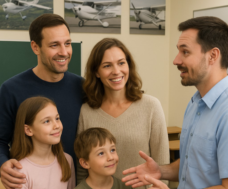 Two students learn together, each receiving personal guidance from an experienced pilot in a fun, focused, and professional environment.